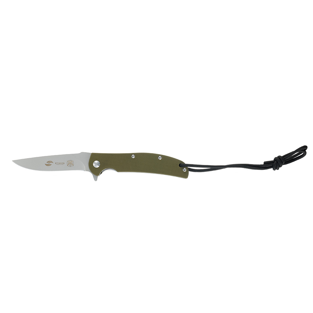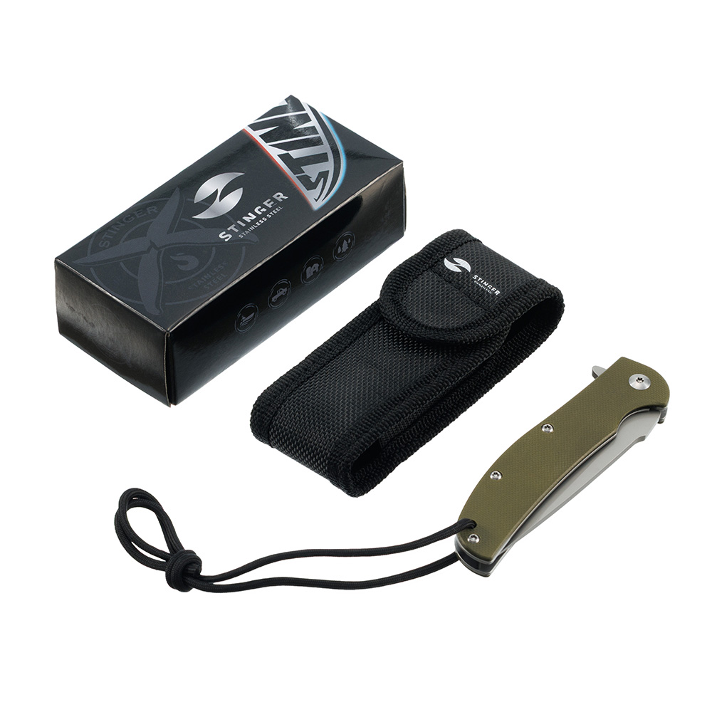 Нож складной Stinger, 100 мм (серебристый), сталь 440A, материал рукояти: стеклотекстолит G10 (хаки), в картонной коробке, FK-KL286-KHK