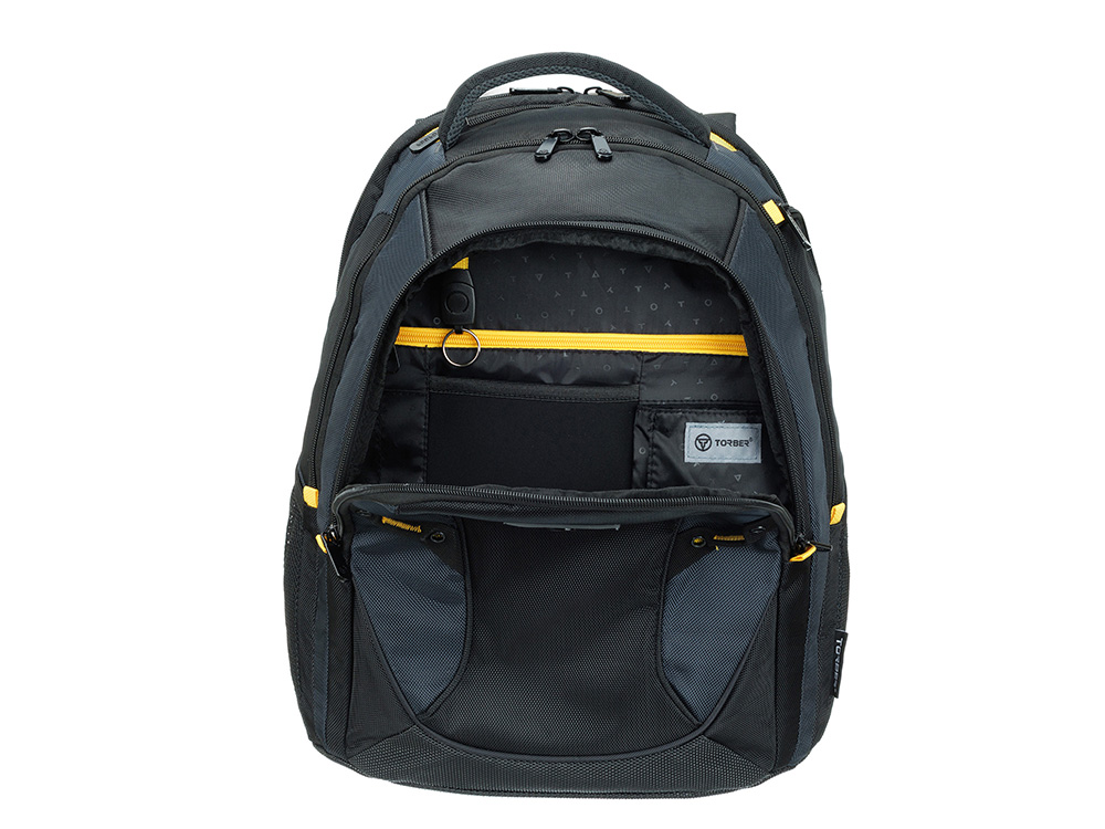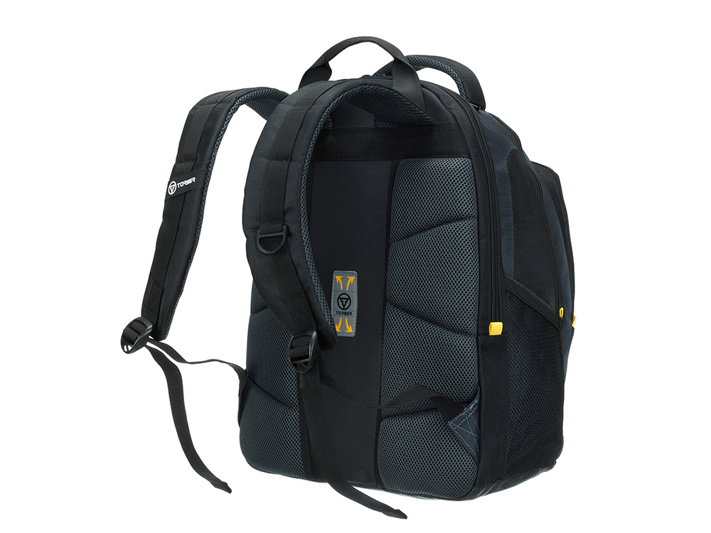 Рюкзак TORBER МЕГАПОЛИС с отделением для ноутбука 15.6, чёрный/серый, полиэстер, 35,5 х 23 х 45 см, 73619