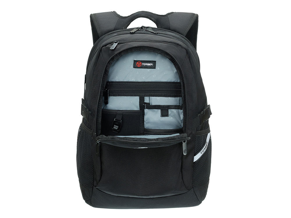 Рюкзак TORBER МЕГАПОЛИС с отделением для ноутбука 16, чёрный, полиэстер, 47 х 34 x 28 см, 73624