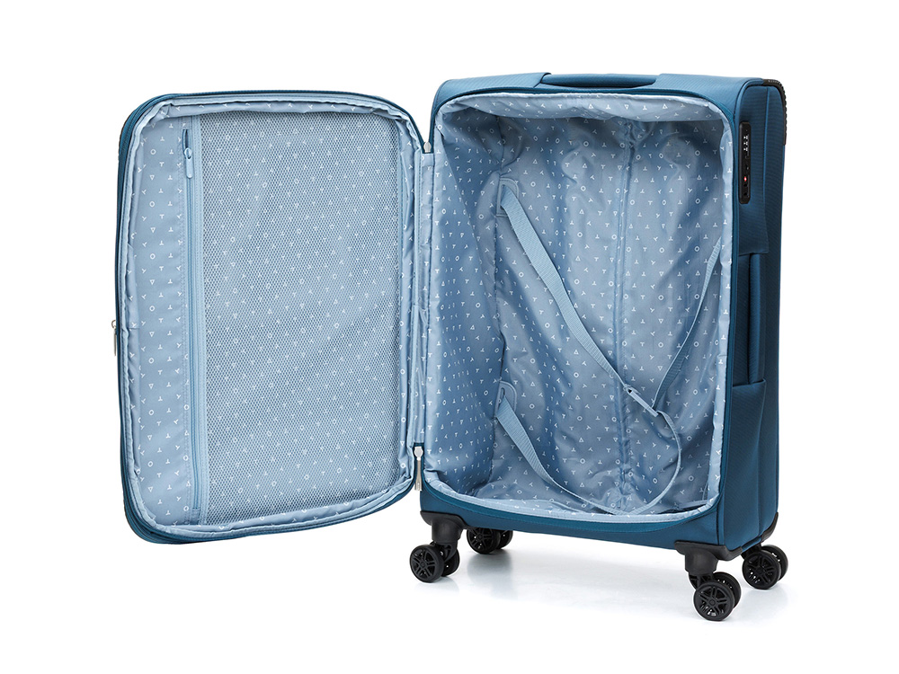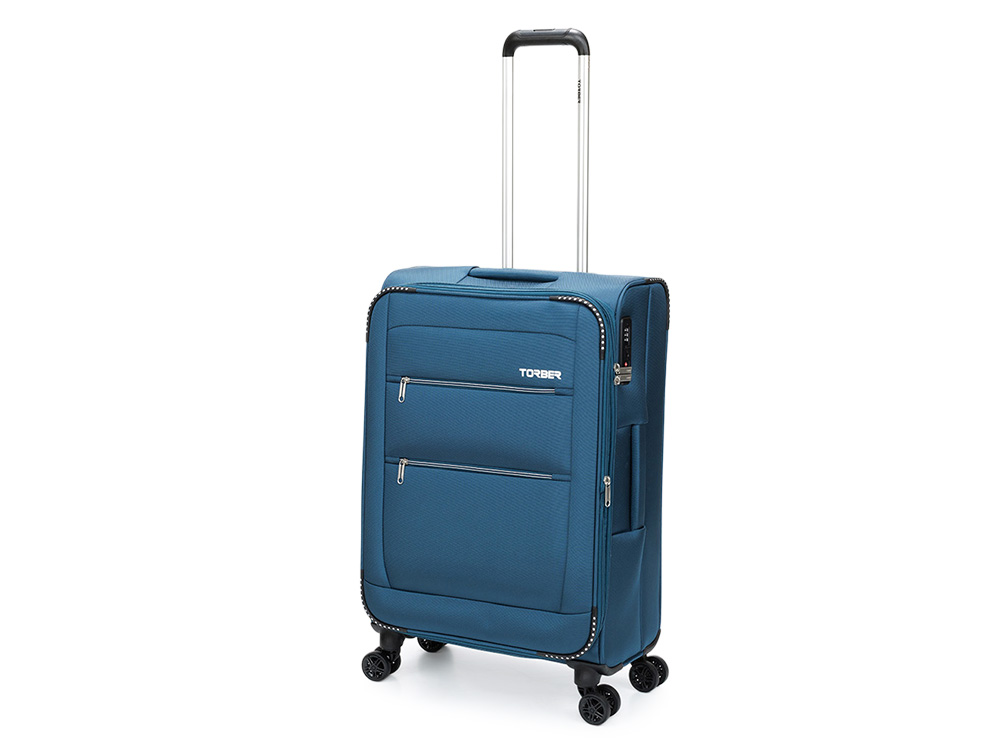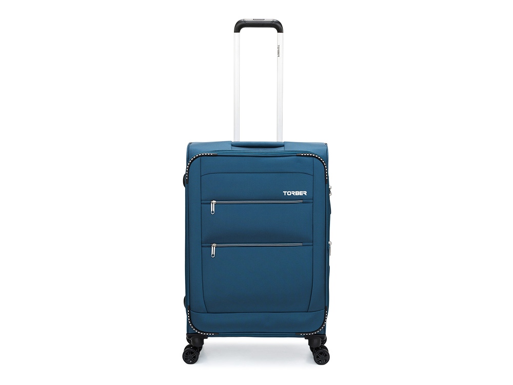 Чемодан TORBER ВИВИ, синий, полиэстер, 44 х 25 х 67 см, 63 л , размер M, 73643