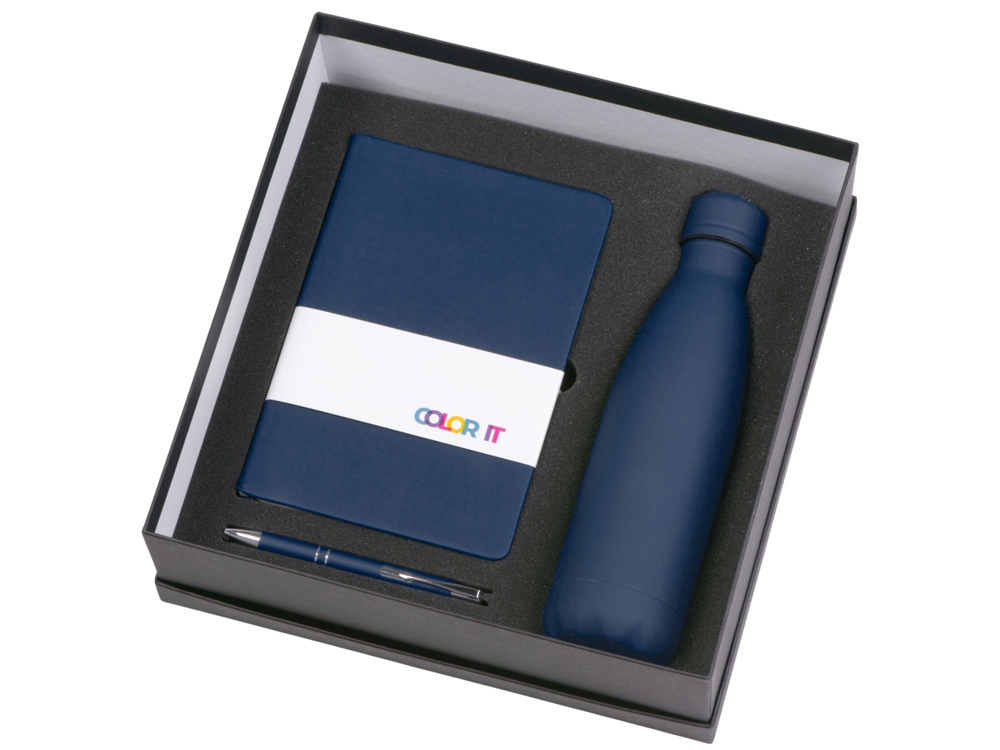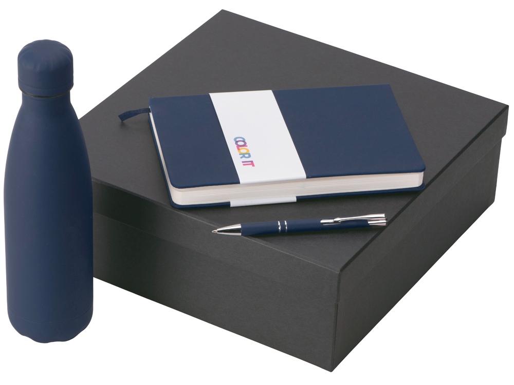 Подарочный набор с блокнотом С2, металлической ручкой и термобутылкой, темно-синий , размер твердая обложка, 350087.08