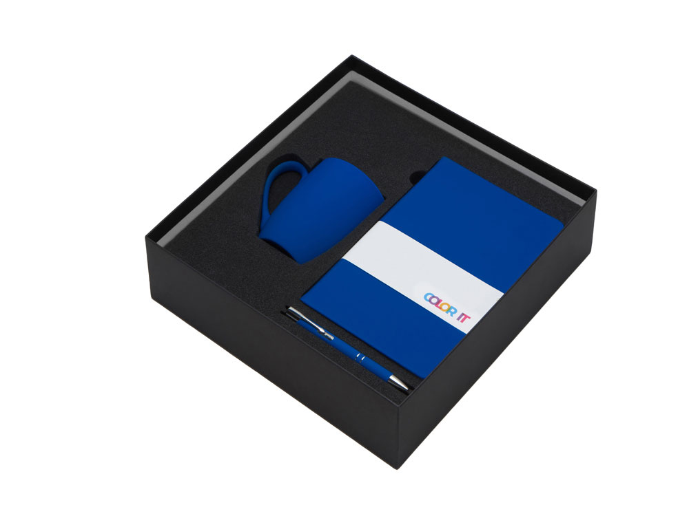 Подарочный набор с блокнотом С2, металлической ручкой и кружкой, синий , размер твердая обложка, 350092.07