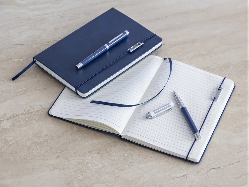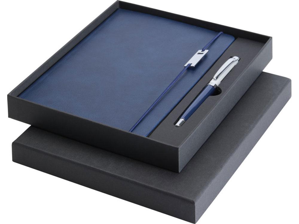 Набор Legato Elegance из блокнота формата А5 в твердой обложке и ручки-роллера, белый/синий, 10625852