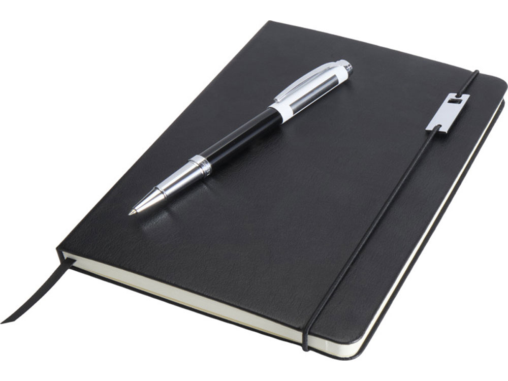 Набор Legato Elegance из блокнота формата А5 в твердой обложке и ручки-роллера, черный/белый, 10625891